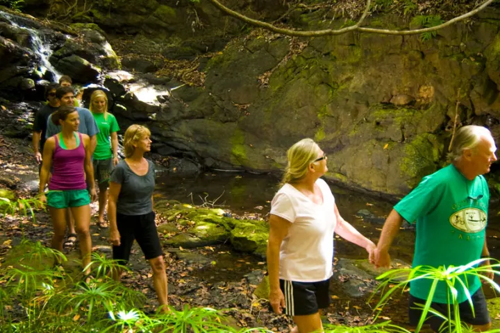 Hule’ia is best known as the site for filming a wide range of major motion pictures including Raiders of the Lost Ark, Jurassic Park and Lost World. Hike lush jungle trails through a fern-covered valley to the secluded pools and cascading falls (rope swings optional). Explore our hidden valley on this kayak tour in Kauai!