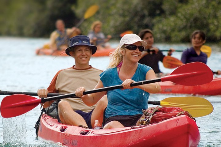 - You must be able to walk one and a half miles over irregular terrain on a good rainforest trail, and paddle a tandem kayak together with a partner for 60-90 minutes. Kayak weight limit 275 lbs per person.